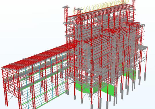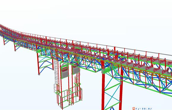 该项目因当地政策原因以及项目甲方的要求,所有钢结构构件不能在施工现场进行二次加工和处理,现场也不能进行任何焊接工作,构件只能在工厂生产完毕,直接运输到现场安装。团队受中国水电八局(施工方)的委托,负责所有钢结构厂房、建筑以及部分钢结构设备的BIM建模及加工图纸的出图,项目总钢材使用重超过2000吨。